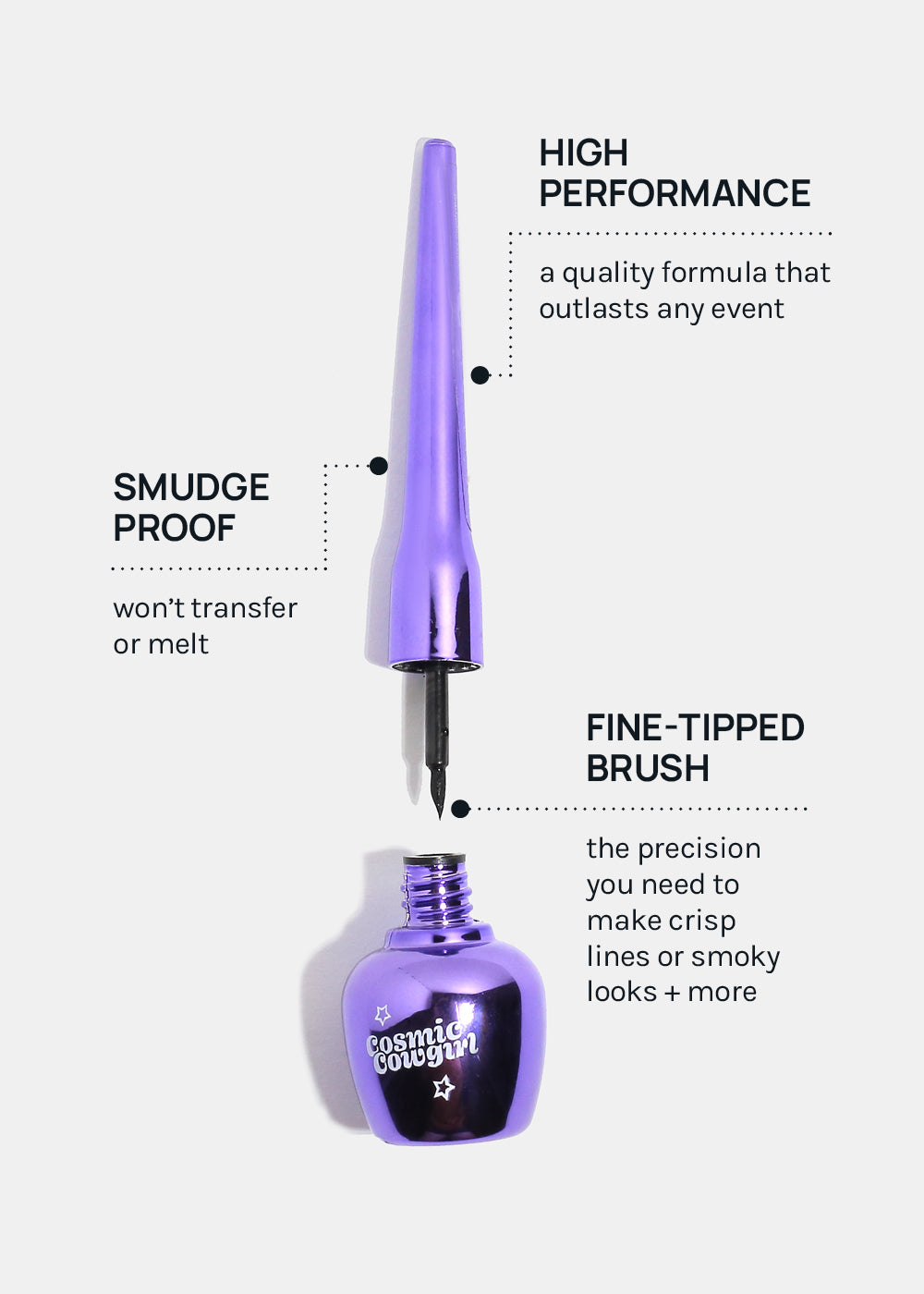 AOA Cosmic Cowgirl Matte Eyeliner is a high-performance, waterproof, matte black eyeliner with a fine-tipped brush to create crisp lines, graphic or smokey looks, + more.